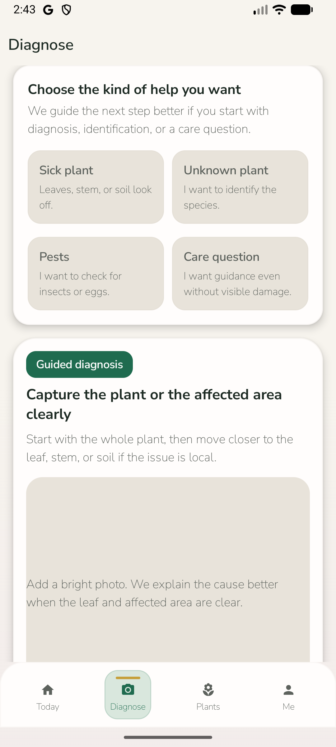 The current app is strongest when the website reflects its real loop: diagnose, ask a follow-up question, save the plant context, and come back later with less guesswork.